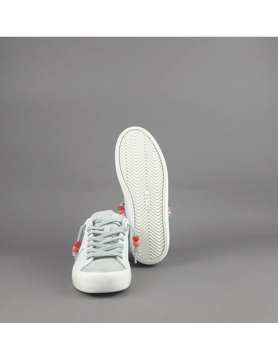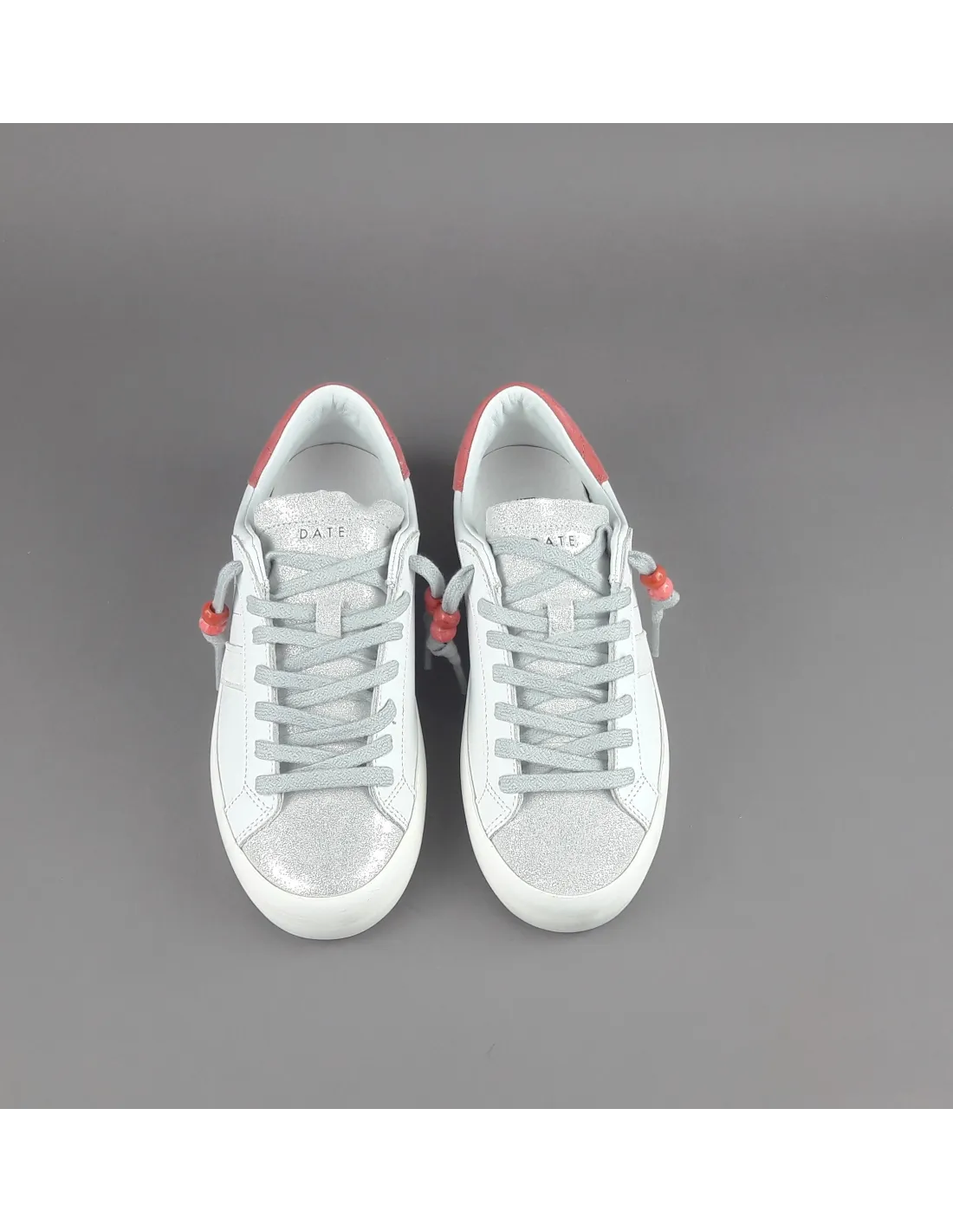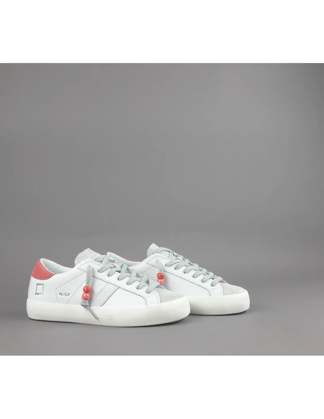 D.A.T.E. collezione estiva, Sneakers donna HILL LOW in pelle, spoiler in camoscio corallo, dettagli in punta in camoscio shiny, logo laterale impresso stampato, fondo fasciato, soletta interna removibile di 2,5 cm, suola in gomma.