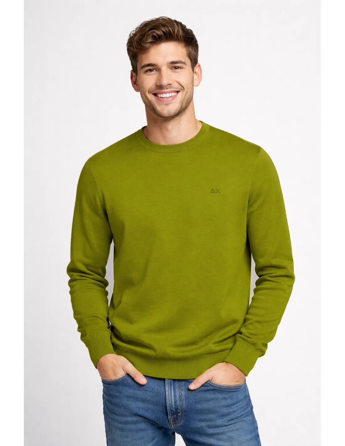 Sun 68 --- Maglia Uomo Girocollo Cotone Verde Militare Tenue