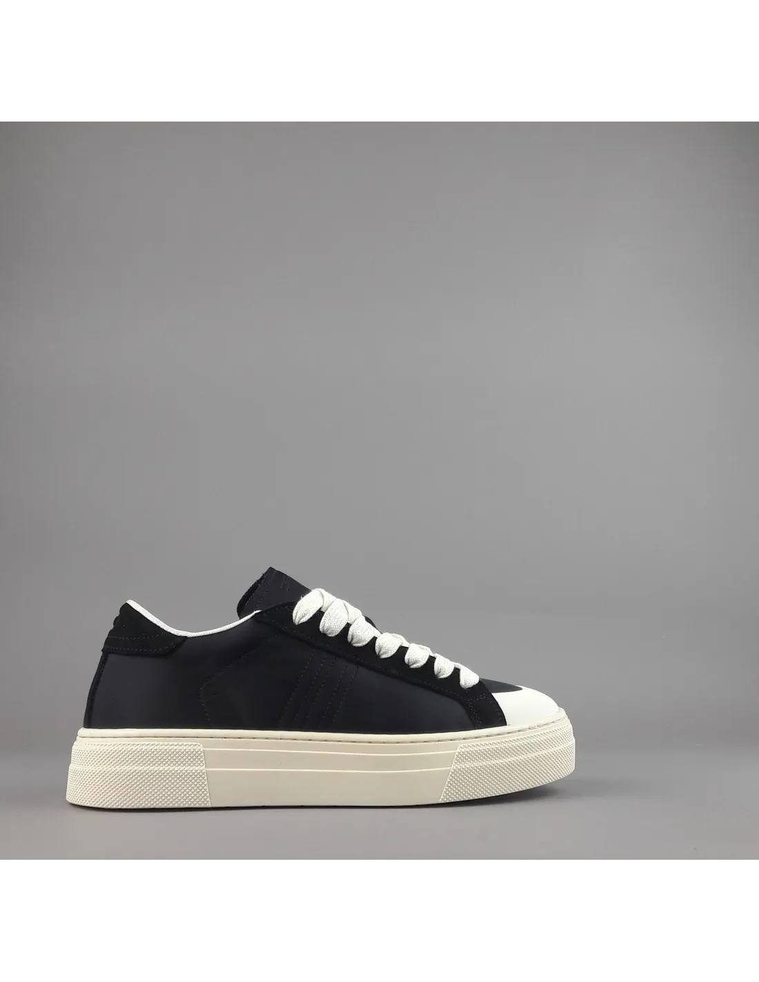 Demna collezione estiva, Sneakers uomo in crosta di camoscio, inserti in tela nylon, dettagli puntale in gomma, logo sulla linguetta, spoiler logato, fussbett estraibile, fondo gomma platform.